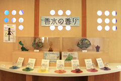 香りの文化史コーナー香りと人類との関わりの歴史を紹介する常設展示コーナー。