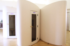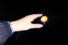 香りの小部屋花びらの形をした小部屋では映像と共に5種類の香りが体験できます。 部屋の画面上に浮かんだ風船に手をのばすと、風船がはじけて香りが出る世界で始めてのユニークなスペースです。