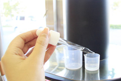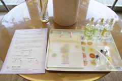 香りの体験コーナーパソコンで自分に相応しい香りを診断し香りを調合して、オリジナルの香りが創作できます。 さらに、香水瓶に絵付けをしたり、サンドブラスターを使って香水瓶の表面に加工したりして、世界に一つしかない自分だけの香り創りにチャレンジできます。