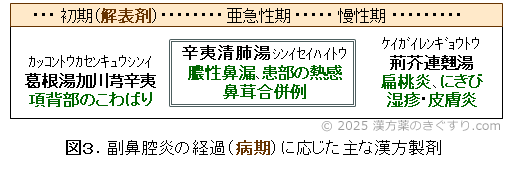 副鼻腔炎の治療は、図3のように症状の経時変化(病期)に応じて方剤を使い分けます。