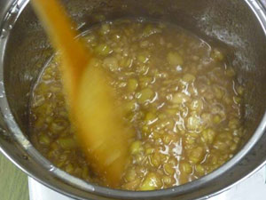 10分程で、とろとろになっていきます。焦げやすいのですばやく更に混ぜます。