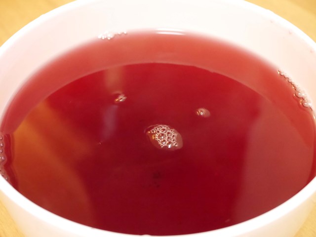 一般的には、氷と水で割って真っ赤な紫蘇ジュース。