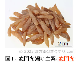 麦門冬湯の名は、麦門冬が主薬であることを意味しています。麦門冬は、ジャノヒゲの根の肥大部です(図1) 。