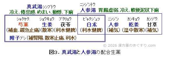 3.冷えと下痢に用いられる真武湯の関連方剤