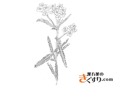 成分としてはアルカロイドのachilleine, betonicine や0.6~0.8%含有している精油中にcineolの他にchamazulene, millfolide などが知られています。この内achilleineには血液凝固促進作用が、精油には消炎作用が認められています。