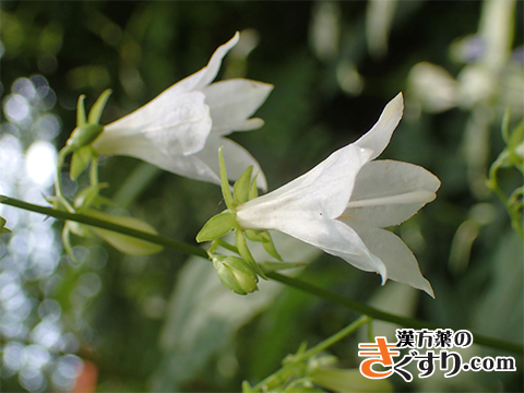 夏から秋の頃に根を掘り採り、半分に割って陽乾したものを、少量の生姜と一緒に煎じてから、おできなどの腫れ物や去痰に用いられます。有効成分としてイヌリンやサポニンが含有されています。古くから中国では薺苨(せいでい)と言われ、あらゆる毒素を解すとされています。