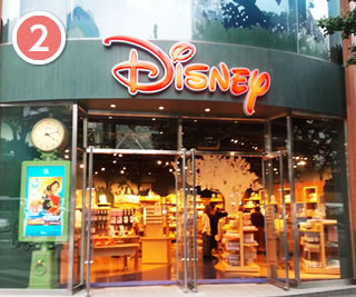 ディズニーストア前を横切ります。