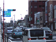 | 水戸駅南口から、大通りに出たら左折します。 |