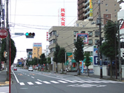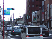 南口からまっすぐのびる広い道路があります。端を渡って、一つ目の大きな交差点(駅南中央)で左折しますので、左斜線によってください。 |