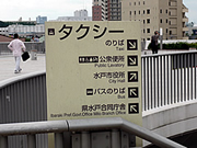 タクシーのりばは外に出ると案内板があります。南口の場合は外(デッキ)へ出て、5mほど進むと右方向に階段があります(エレベーターもあります)。降りるとすぐ、タクシーのりばになっています。 | 「浜田方面の東台2丁目 交差点の五藤薬局」と伝えましょう。 万が一、運転手が分からないようでしたら、「下市ジャスコ方面にある交差点です」と添えてください。 横断歩道を渡ってすぐです。 |