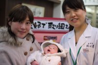 待望の第2子を抱くOさんと、薬剤師の忠地先生